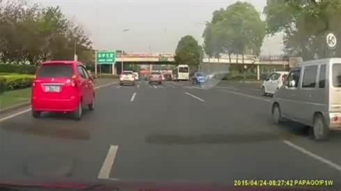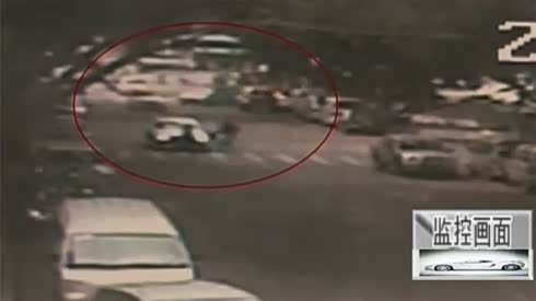 监控实拍:小车突然失控甩尾 致多车连环相撞...