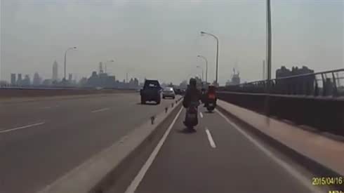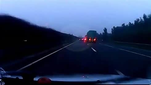 监控实拍:高速拿生命跟大货车玩 太拼了...