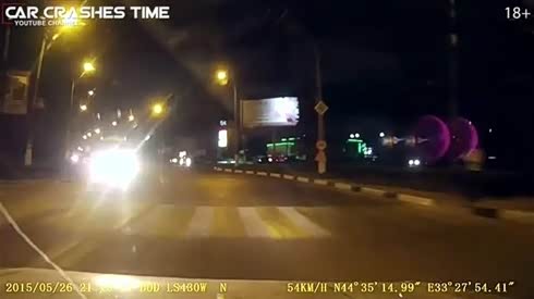 监控实拍:摩托飞车遭遇小车转弯 车毁人亡...