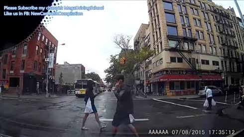 监控实拍:车前突然鬼探头 差点撞上 吓尿了...