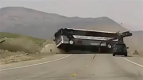 监控实拍:大客车失控 疯狂翻滚三周半 这人还能活吗...