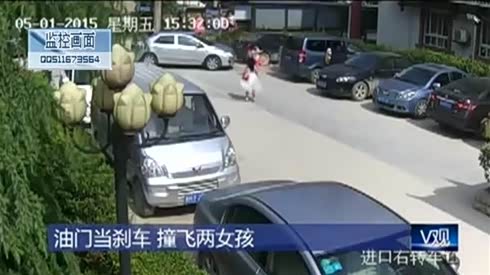 监控实拍:女司机错把油门当刹车 撞飞俩女孩...