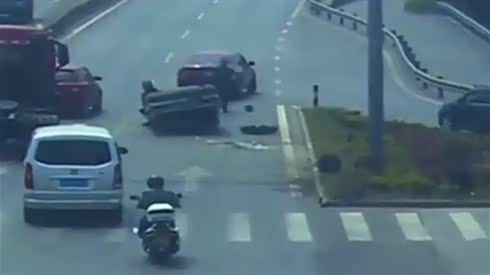 监控实拍:紧急躲避大货车 女司机惨烈翻车 路人自发抬车营救...