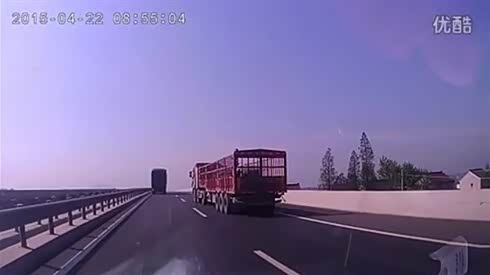 监控实拍:小车在两大货车间钻缝超车 被惨虐...