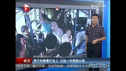 男子抡拳暴打老人 引起一车乘客众怒