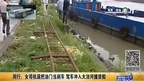监控实拍:女司机误把油门当刹车 驾车冲入大治河撞货船
