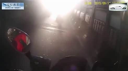 监控实拍:摩托男开飞车 撞车后飞起来了...