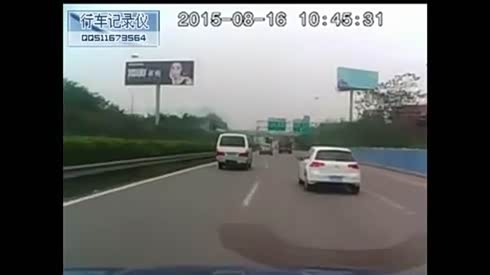 监控实拍:缺德奥迪司机 高速超车道急刹 后车害惨了
