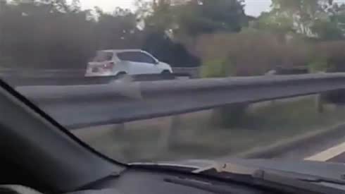 监控实拍:太危险了!高速超车猛打方向 险失控翻车...