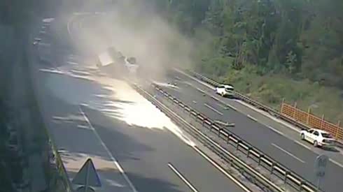 终极大毁灭!大货车高速爆胎失控撞得惨不忍睹