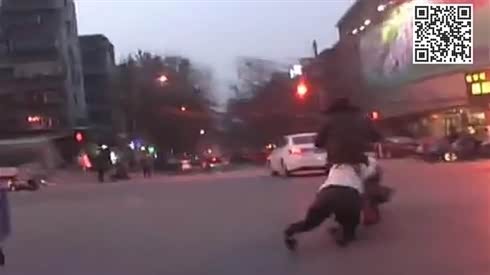 监控实拍:盲目抢行!摩托女撞上保时捷 惨了...