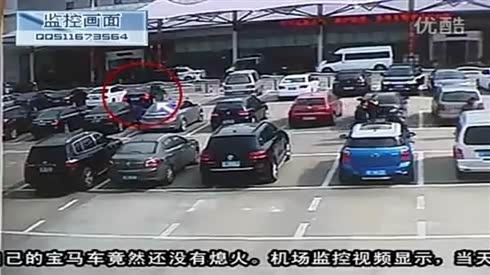 监控实拍:奇葩!宝马车主已上飞机 宝马车停机场竟忘熄火