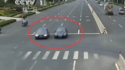 太倒霉了!轿车高速遭脱落轮胎猛撞