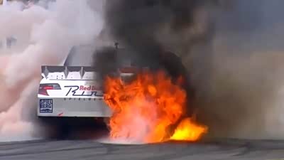 后胎冒火 丰田NASCAR赛车玩暴力烧胎