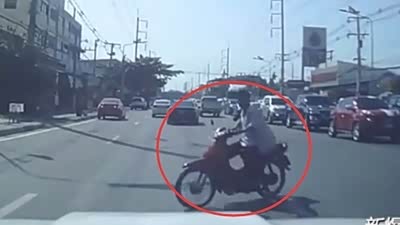 又见鬼探头!实拍摩托车惨遭汽车撞飞