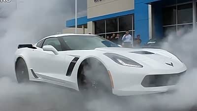 烟雾缭绕 实拍科尔维特Z06原地烧胎