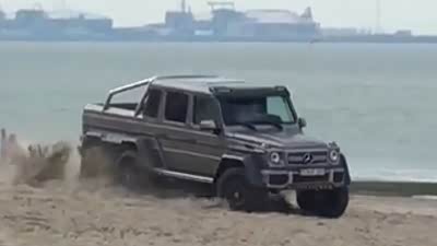 多脚怪 奔驰G63 AMG 6x6沙滩上撒欢