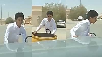 这下可咋办 汽车溜车中东少年无奈救车