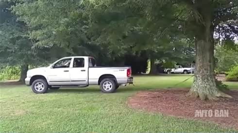 玩笑开大了 皮卡车拽树结果彻底被耍