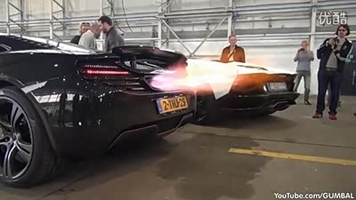 一对好基友 迈凯伦12C与大牛齐玩喷火