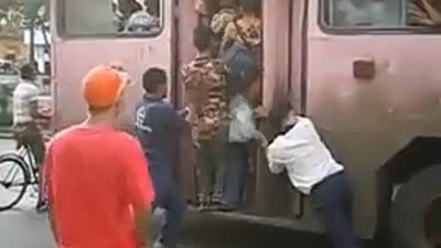 超越北京地铁 古巴超强拖挂公交被挤爆