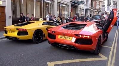 喷火猛兽 两台兰博基尼大牛伦敦炸街