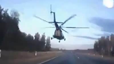 场面够大气 车友偶遇低空飞行直升机