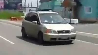 这是玩命啊 实拍疯狂轿车倒车上路行驶