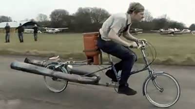 玩的太疯狂 男子自制脉冲喷气自行车