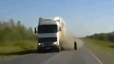 太倒霉了!货车车轮脱落击中无辜小车
