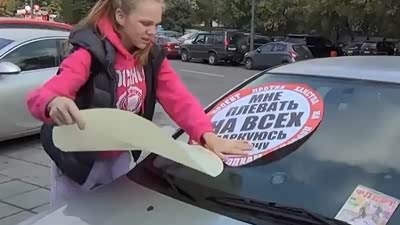 大贴纸糊风挡 俄罗斯车友对抗违章车辆