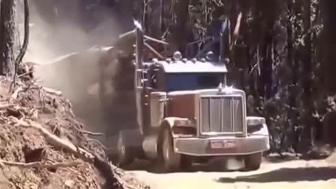 相当费劲 满载木材的大货车土路行驶