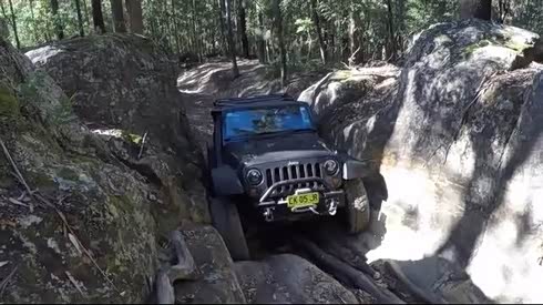 前脚翘上天 Jeep牧马人爬坡差点翻车