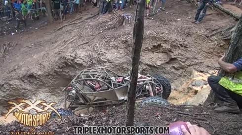 冲得太猛了 钢管越野车沟壑惨烈翻车