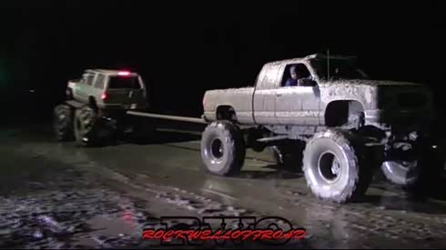 美式的狂野 升高大脚皮卡车拔河比赛