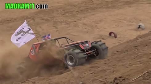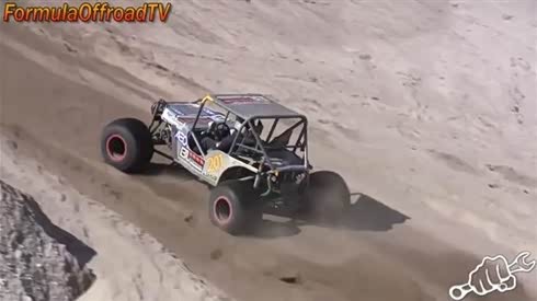 硬生生地摔下 越野赛车冲坡时不慎翻车