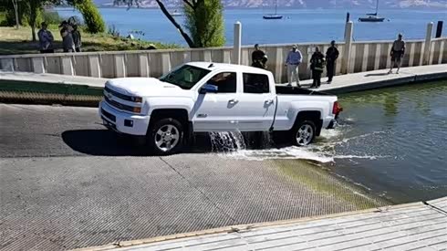出场方式很特别 雪佛兰皮卡开进水中