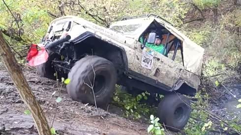 女中豪杰 钢管越野车湿滑沟壑全力攀爬