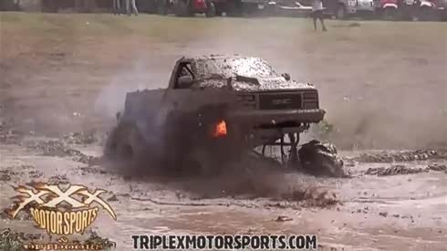 玩得太嗨 爆改皮卡泥水潭疯狂豁车起火
