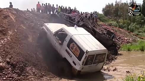玩的很嗨 实拍改装越野车挑战障碍赛
