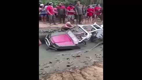 易肇事路段 SUV和卡车过泥地纷纷陷车