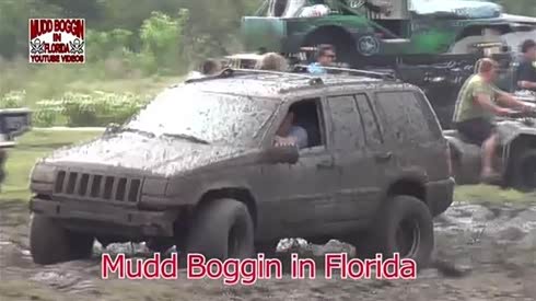 看谁玩得漂亮 实拍四轮越野车穿越泥坑