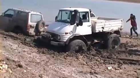 丰田陆巡围观 乌尼莫克泥地陷车自救