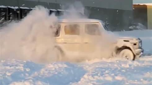 玩的好刺激 看奔驰G65 AMG雪地漂移