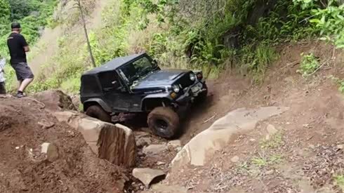 不翻才怪呢!牧马人爬陡坡时惊险一幕