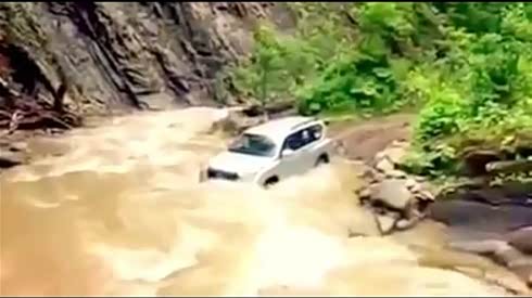 差点挂了 丰田普拉多过河