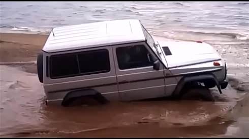 奔驰G级海滩陷车 强悍脱困!
