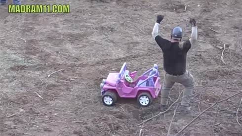 外国真会玩 趣味芭比吉普车赛车下坡赛