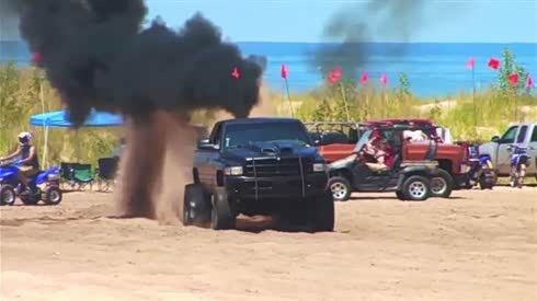 玩得真开心 皮卡冲沙坡撩起漫天黄沙