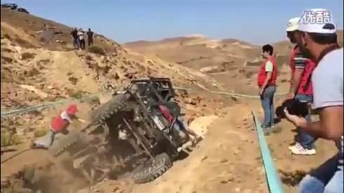 硬生生地摔下 越野赛车冲坡时不慎翻车